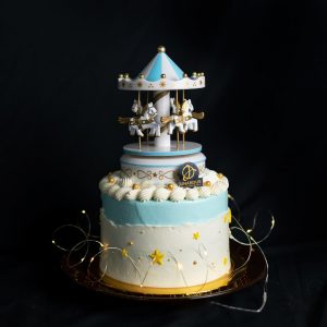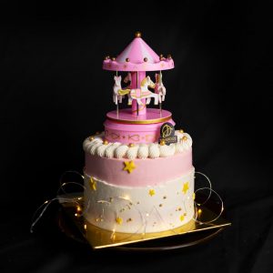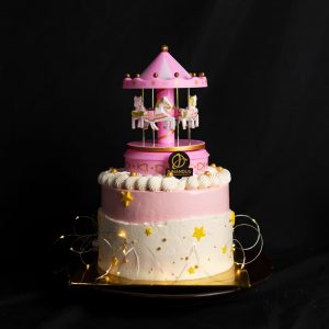 Our vintage yet luxurious merry-go-round cake with “Castle in the sky” song will definitely take you on an enjoyable swirl of sumptuous and heavenly! Flawlessly sculpted fondant topped with a musical carousel toy that will make you reminisce about your childhood days, our pastel-coloured, funfetti confection enchants anyone who lays their eyes on it. Carousel cake is definitely the perfect birthday cake for children and adult!